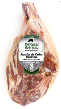 Jamón de Cebo Ibérico 50% raza Ibérica - Хамон де Себо Иберико 50% Иберийской породы, сыровяленый свиной окорок (задняя нога) - это иберийская ветчина высочайшего качества, которая выделяется своим ароматом, вкусом и мягкой текстурой, что делает ее настоящей жемчужиной.