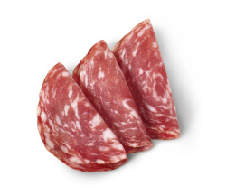 Неаполитанская разновидность салями обладает восхитительно пряным, чуть сладковатым вкусом. Пикантный аромат с дымной нотой, в результате естественного копчения. Послевкусие интенсивное. Чёрный перец горошком добавляет лёгкой остроты и наряду с другими специями и вином усиливает вкус. Соль в норме. Достаточно подсушенная, но не жесткая. Текстура плотная и приятная. При разрезании от глубокого розового до ярко-красного цвета. Зерно средне-крупной рубки. Отличительная особенность этого вида - довольно крупное измельчение мяса. Грубое мясное тесто, легкий дым и перец горошком дополняют друга друга и придают этой салями аппетитный и характерный вкус.