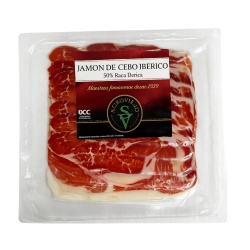 Премиальный испанский деликатес — Jamón 50% Ibérico в формате готовой нарезки. Производится из свиней с 50% иберийской генетики, прошедших традиционную сухую выдержку. Нарезка сохраняет характерный аромат, насыщенный вкус и нежную текстуру хамона, полностью готова к подаче и идеально подходит для сервировки без дополнительной подготовки.