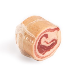 Насладитесь тонкими ломтиками нежной сыровяленой ветчины, выдержанной в соли и ароматной смеси специй: розовый и чёрный перец, тимьян, чеснок, пропитаны утончённым вкусом бальзамического уксуса.